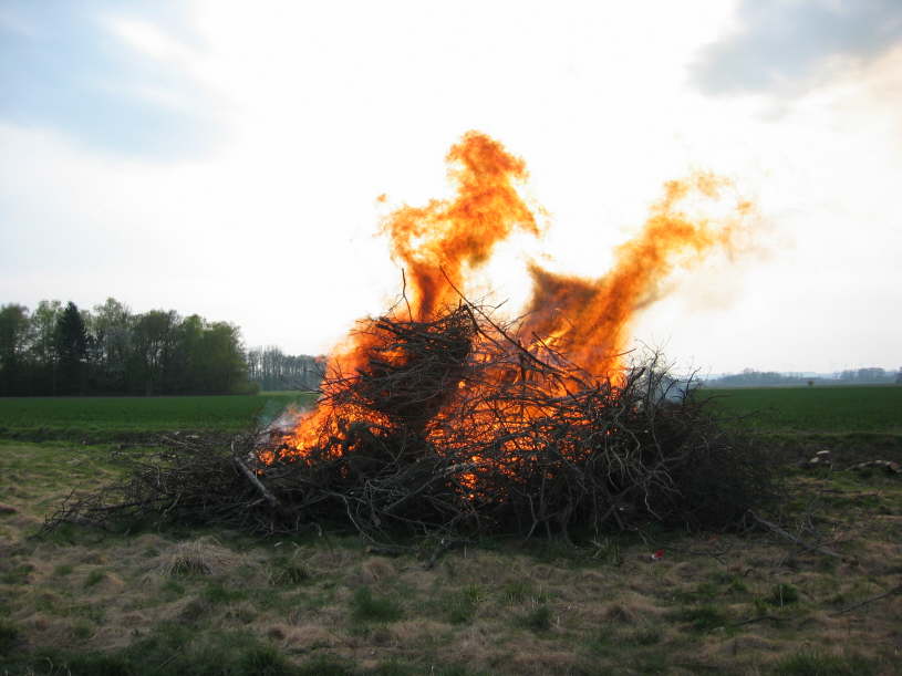 Das ist unser Osterfeuer. Obwohl es so schön nur so lange wie ein Strohfeuer brannte, weil es aufgrund des schönen Wetters schön trocknen konnte - im Gegensatz zu manch anderen Jahren -, reichte es doch alle Mal um die hungrige Schar mit mit Stockbrot und Kartoffeln satt zu bekommen.