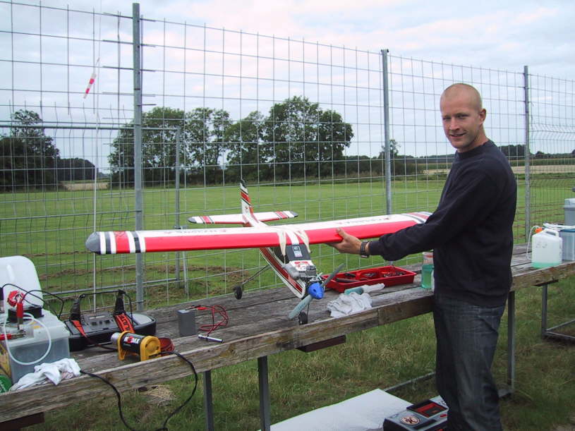 mit dem Modell, mit dem er im Lehrer-/Schülerbetrieb das Fliegen in erstaunlich kurzer Zeit erlernt hatCessna ARF