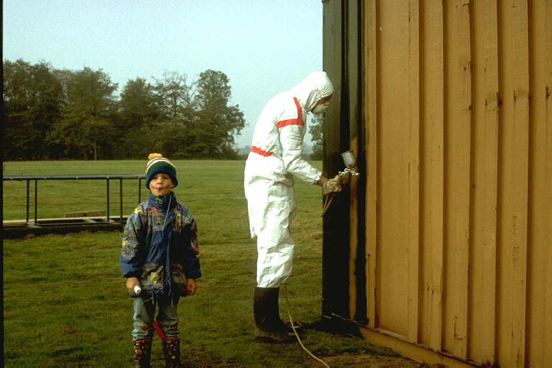 tarnen die Hütte gemäß Vorgabe der Umweltschutzbeauftragten